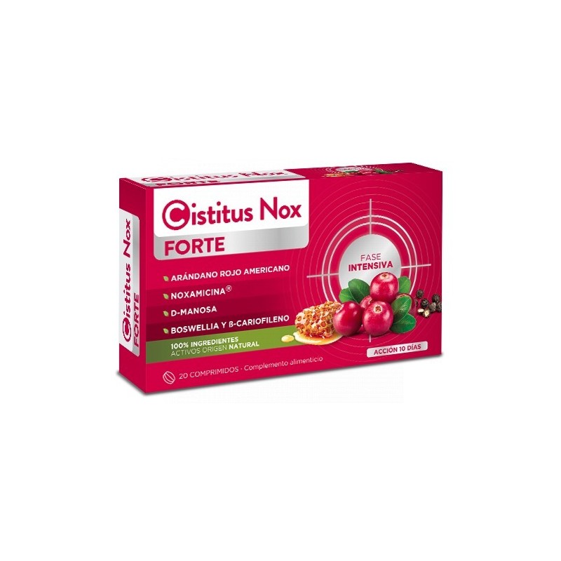 Cistitus Nox® Forte está compuesto por una fórmula muy innovadora a base de Arándano Rojo Americano, que posee una alta concentración en proantocianidinas (PAC´s), Noxamicina®, D-Manosa, Beta-Cariofileno y Boswellia.